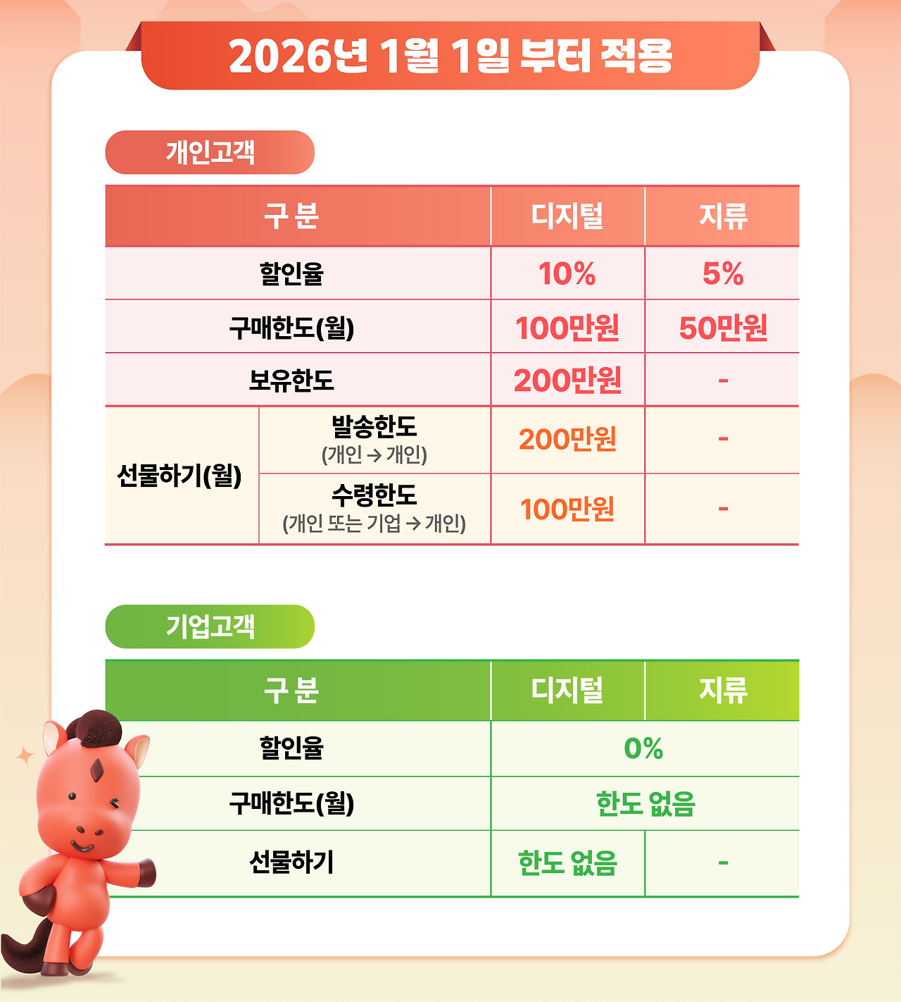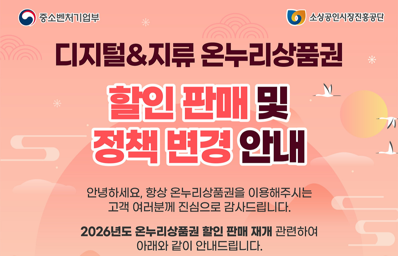 2026년 1월 1일부터 온누리상품권의 할인 정책이 적용됩니다.